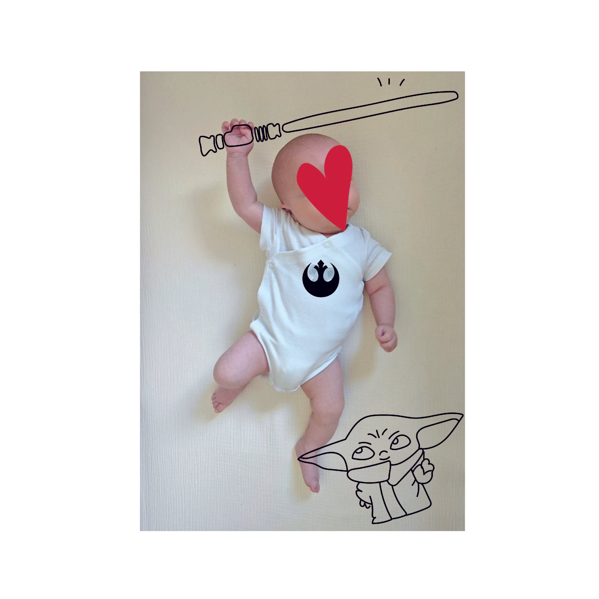 Sur un fond blanc, je viens dessiner par-dessus avec un feutre noir pour créer un faire-part unique, drôle & poétique : à votre image.
